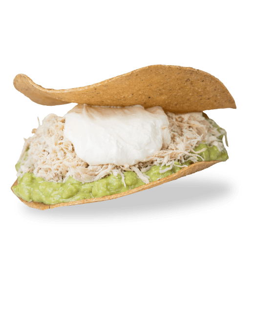 Shredded chicken, refried beans, lettuce, tomato, onion, cheese and crema in two 7 inches toasted tortillas....